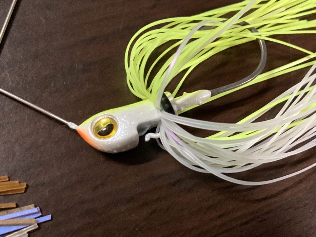 このレベルスピンピノもその1つで、スピナーベイトの頭の部分にワンタッチでオモリをつけることができます!